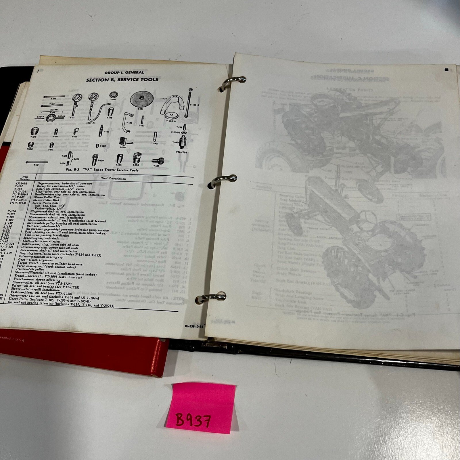 Original VINTAGE Case VA Service Manual & Parts Catalog B937