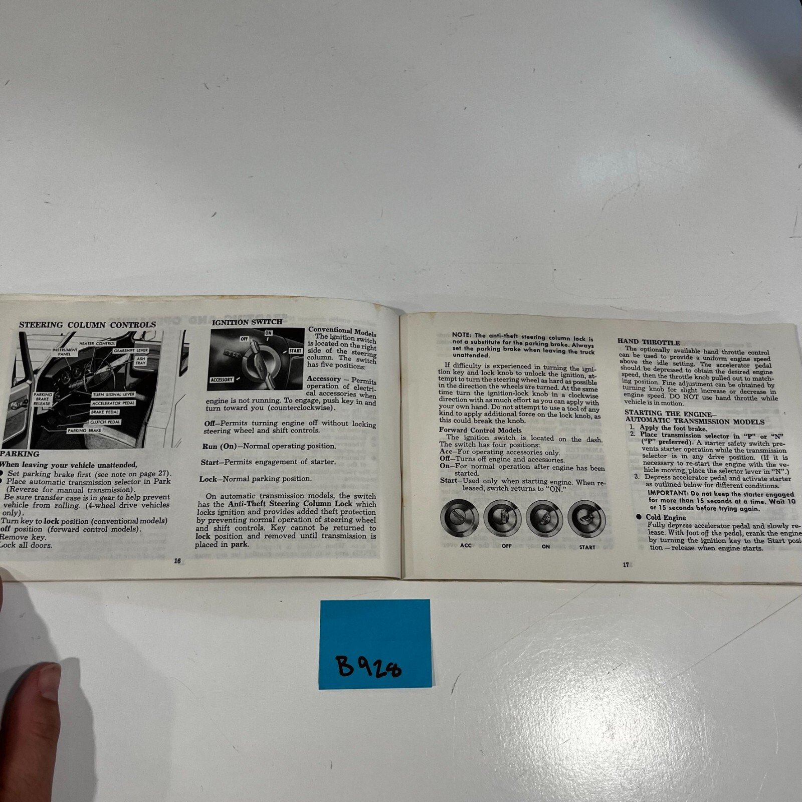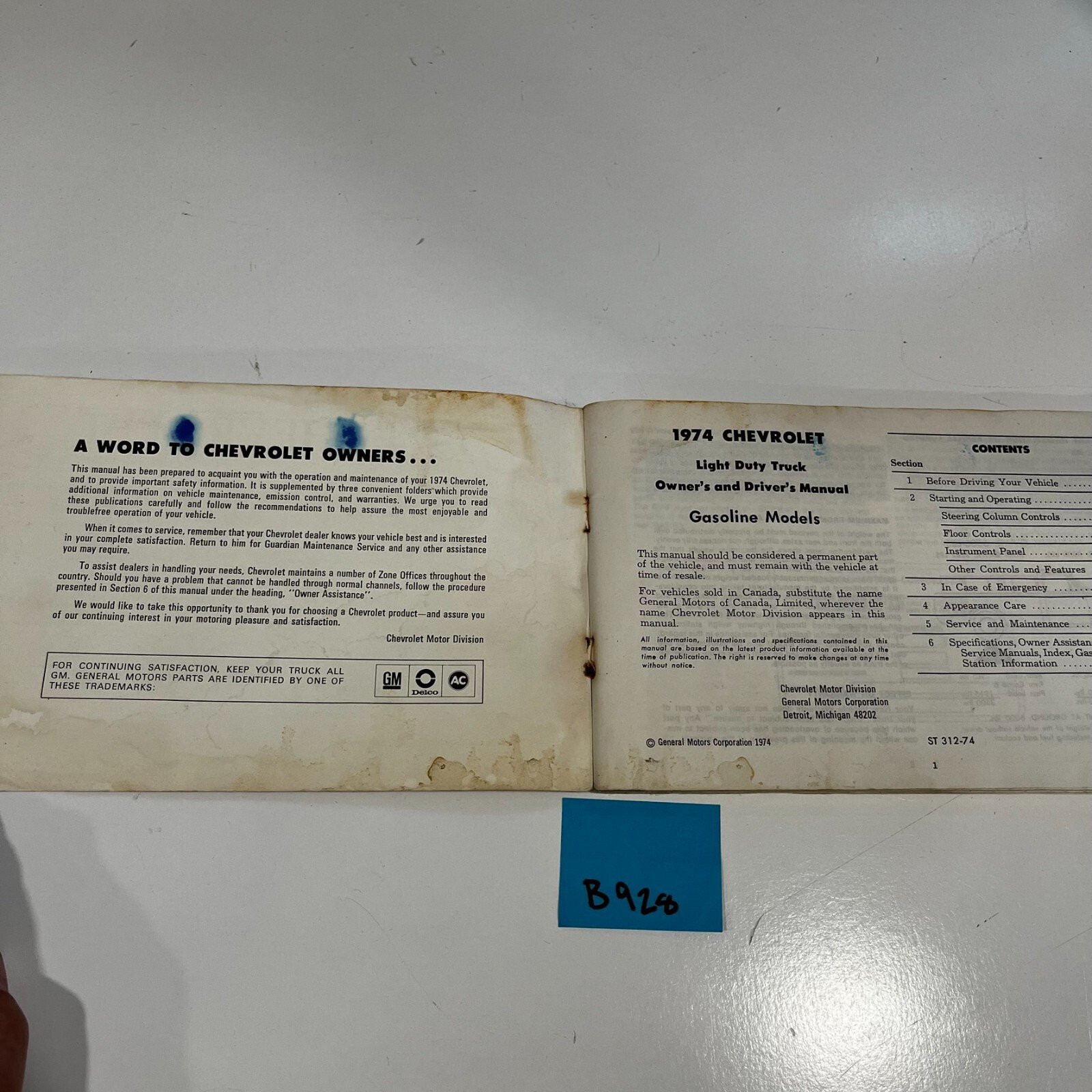 Owners and drivers manual 1974 Chevy Chevrolet light duty truck gasoline B928